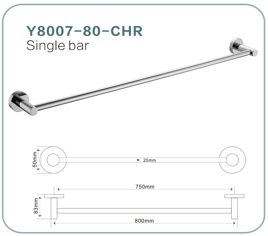 With an 800 mm total length and 750 mm usable hanging space, it offers generous room for bath or hand towels while maintaining a streamlined, space-efficient form. Designed with precision-engineered fittings and concealed wall mounts, it provides a clean and professional installation look.