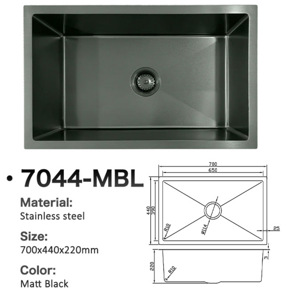 Crafted from high quality stainless steel, the 7044-MBL provides exceptional strength, corrosion resistance and long-term durability for everyday household use. The expansive 700mm wide bowl combined with a 220mm depth offers outstanding washing capacity, ideal for large cookware, baking trays and meal preparation tasks, making it perfectly suited as a primary kitchen sink.