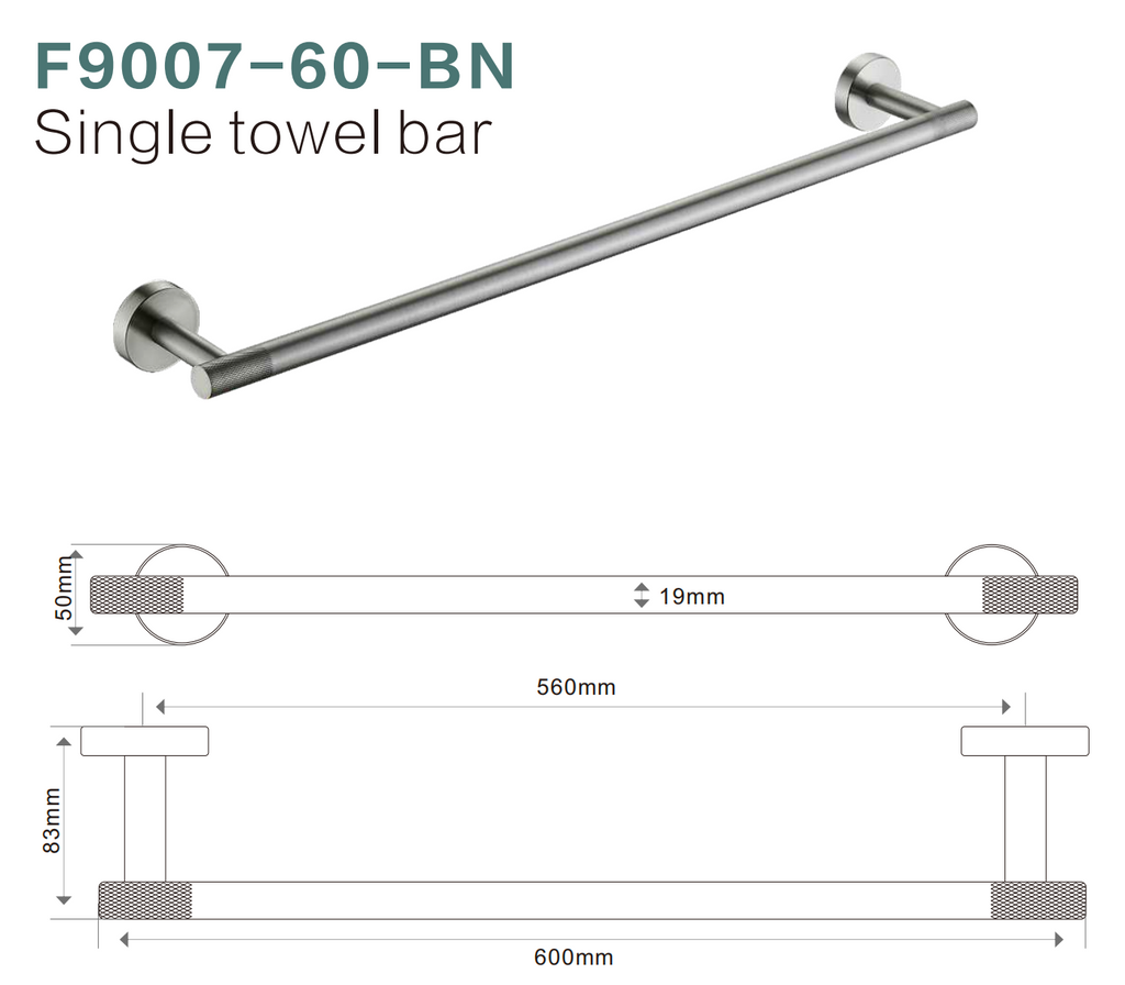 The BISTONE F9007-60 Single Towel Rail offers a timeless cylindrical design that brings a touch of understated elegance to modern bathrooms. Crafted from premium solid brass, this wall-mounted rail provides exceptional durability, corrosion resistance, and a luxurious finish that enhances any interior style.