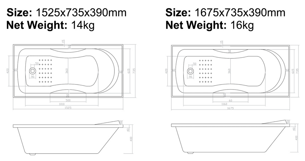 1525 × 735 × 390 mm — Net Weight: 14 kg