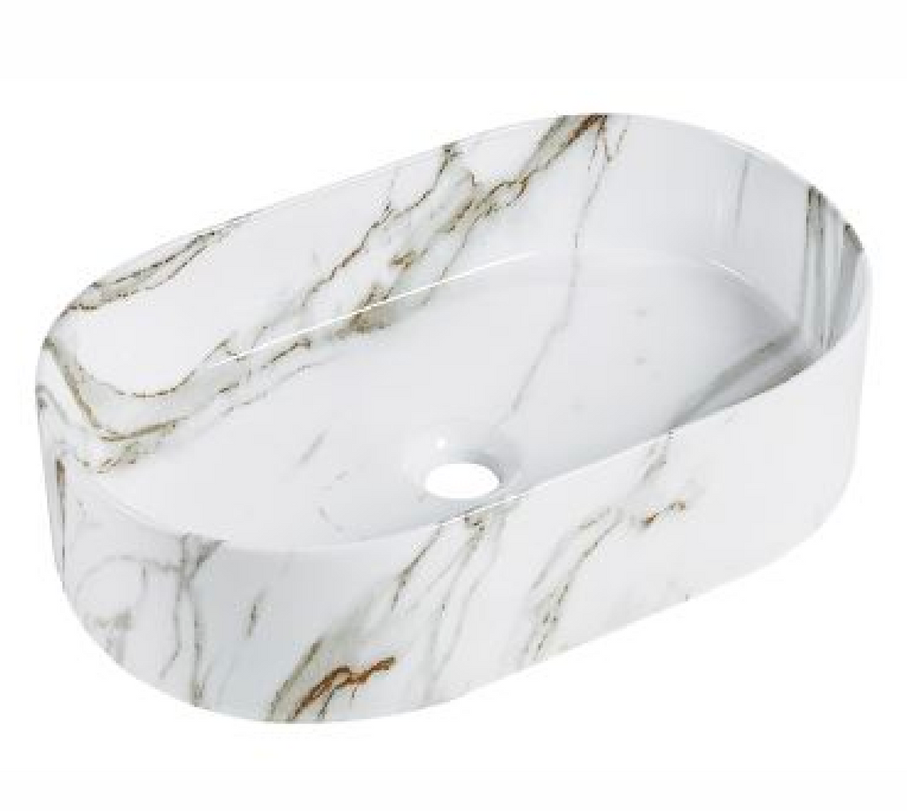 【Basin 3207-P07】Glossy Marble Finish with Pattern – 500×340×120 mm Rectangular Ceramic Basin