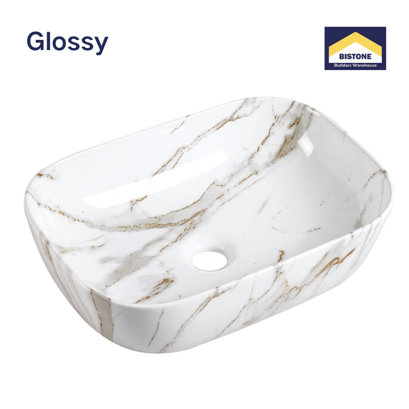 The Art Basin 8215/8217-P07 Glossy combines a sleek rectangular silhouette with luxurious white marble and elegant golden veining. This above-counter basin brings a refined and modern character to any bathroom vanity. The glossy surface enhances both brightness and durability, making it easy to clean and resistant to stains. Its balanced proportions and distinctive marble pattern create a statement piece that elevates contemporary and classic bathroom interiors alike.