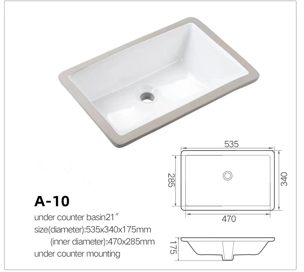The A-10 Rectangular Undermount Basin offers a clean and minimalist design, ideal for modern bathrooms seeking a refined under-counter look.