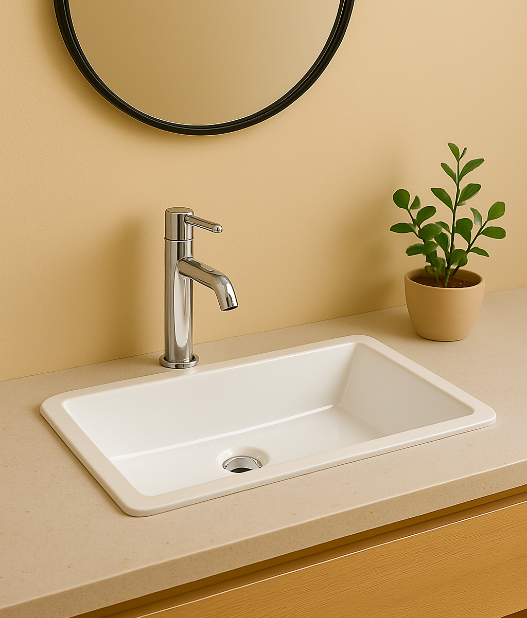 Its rectangular shape provides generous washing space while maintaining a sleek, integrated appearance beneath the countertop.