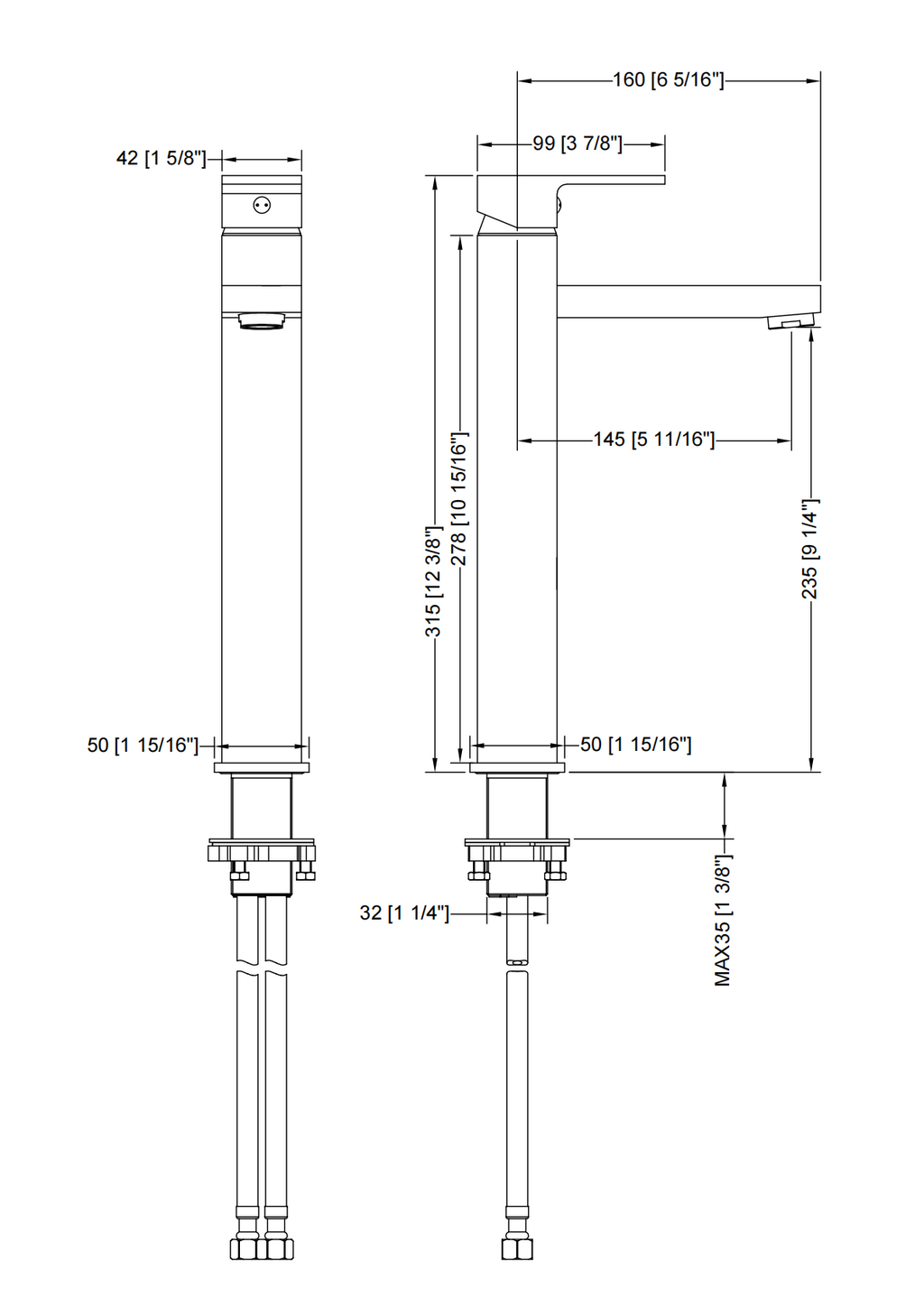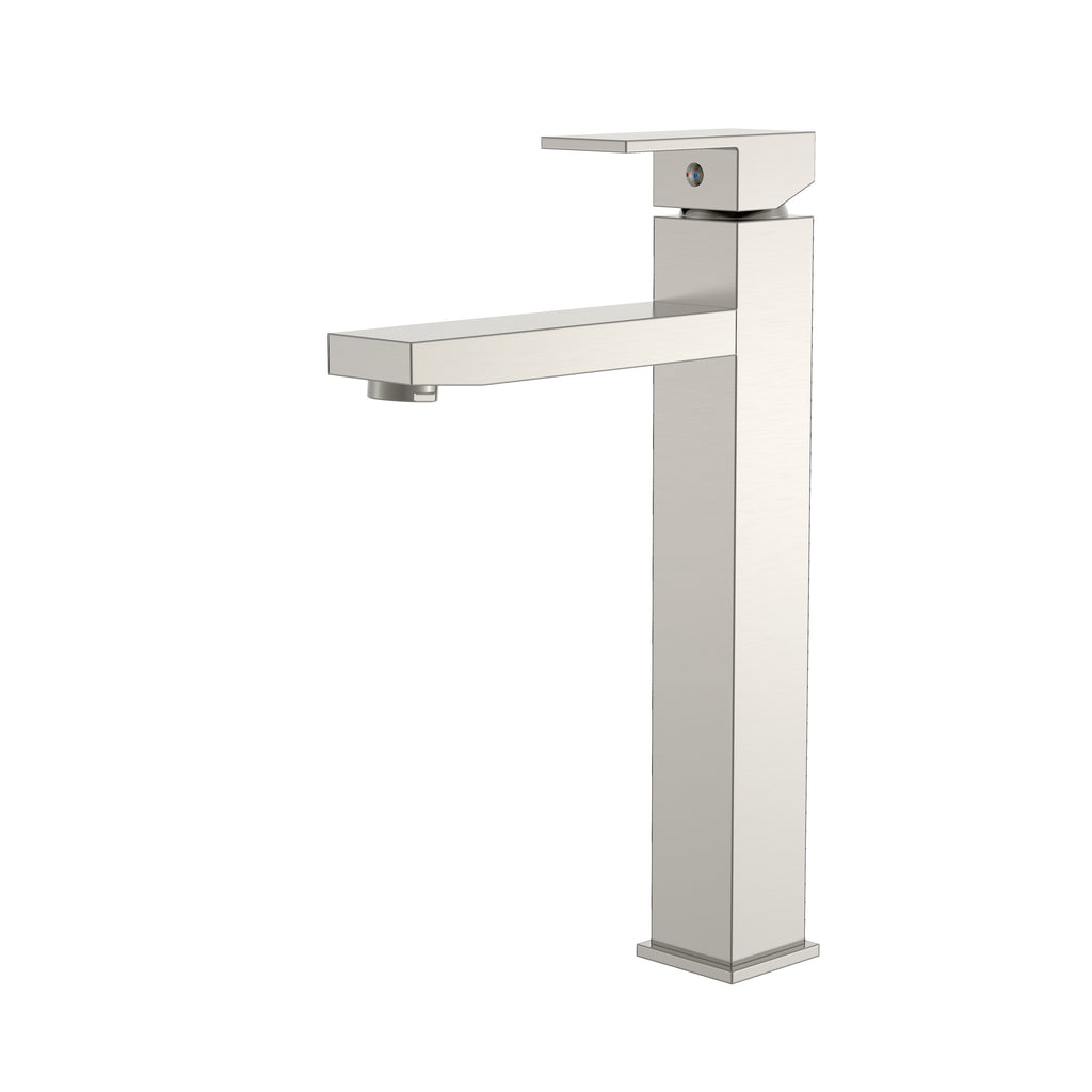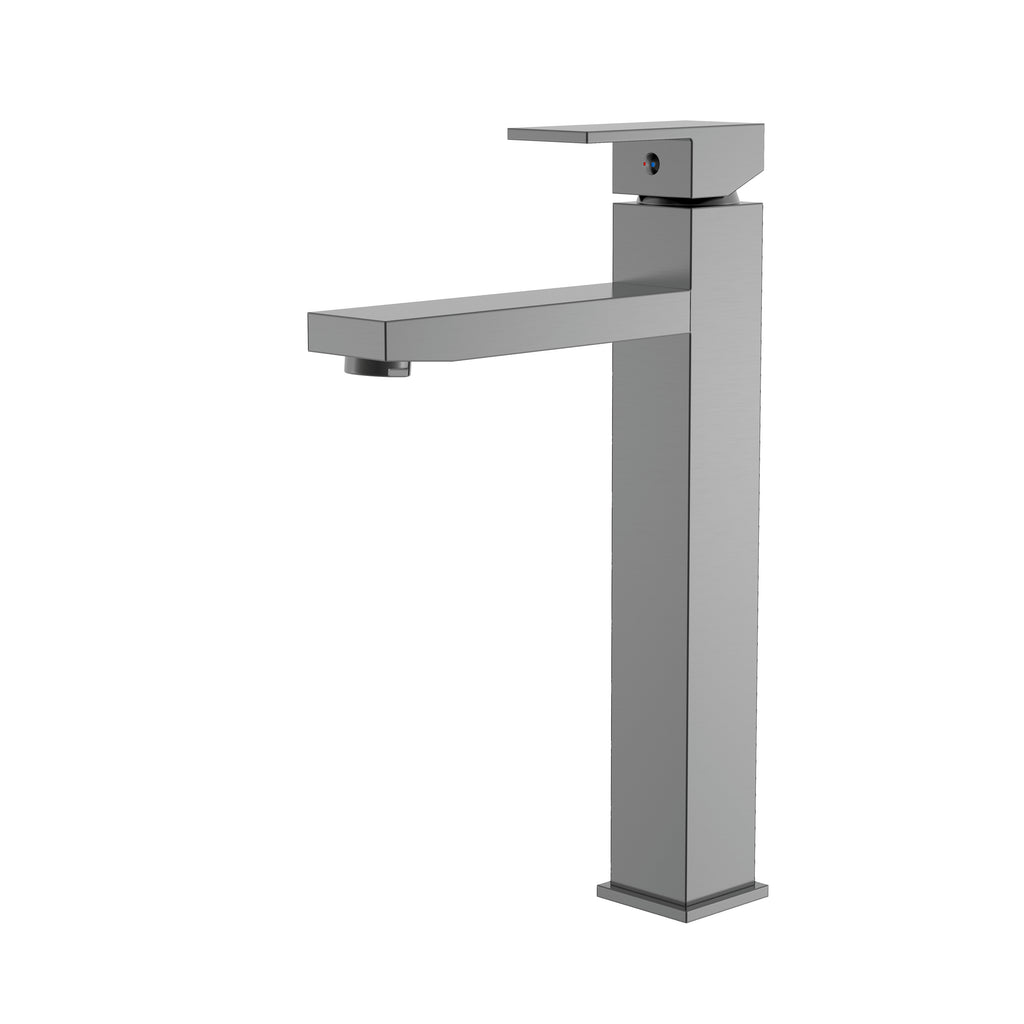 The BISTONE 81H57T Tall Basin Mixer Tap is designed with a sleek square body and a streamlined flat lever, offering a clean, architectural look ideal for modern above-counter basins. With a 235 mm total height and 145 mm spout reach, it ensures comfortable clearance and precise water delivery.