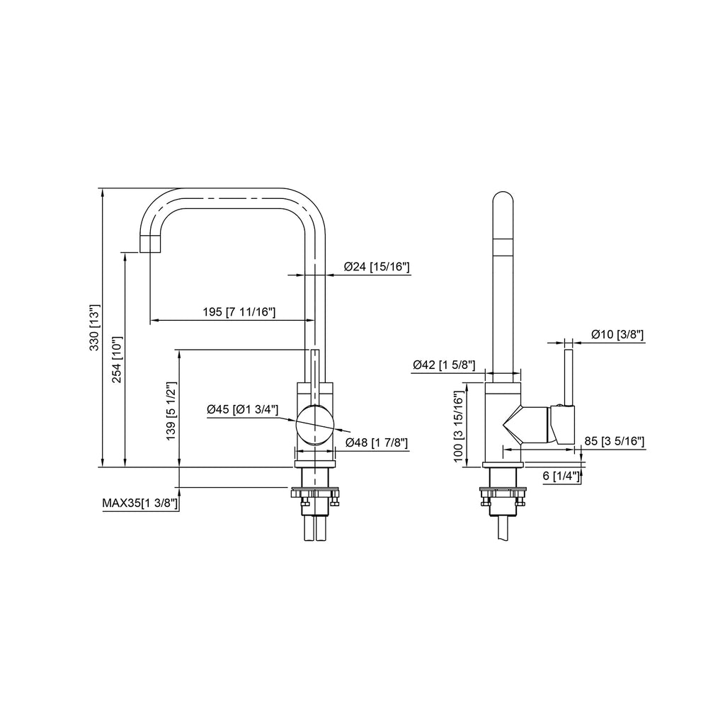 The BISTONE 82H33 Kitchen Mixer Tap combines minimalist elegance with precise functionality, featuring a square gooseneck spout that delivers a distinctive modern aesthetic. Designed for practicality and sophistication, its smooth ergonomic side handle allows for effortless water flow and temperature control, while the elevated spout provides ample space for filling large pots and cleaning tasks — perfect for contemporary kitchens.