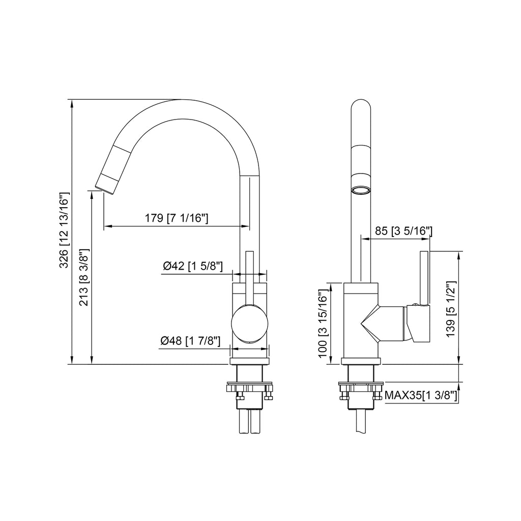 The BISTONE 82H37 Kitchen Mixer Tap features a sleek gooseneck spout with a streamlined cylindrical body, combining modern design with ergonomic precision. Its high-arch spout allows generous clearance for large pots and pans, ensuring both practicality and elegance in any contemporary kitchen. The side lever handle provides effortless control of water flow and temperature, enhancing user comfort and convenience.