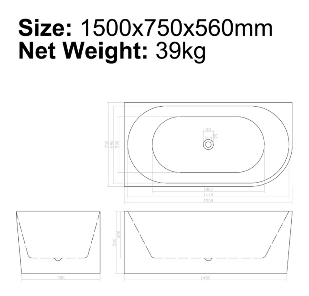 1500 × 750 × 560 mm — Net Weight: 39 kg