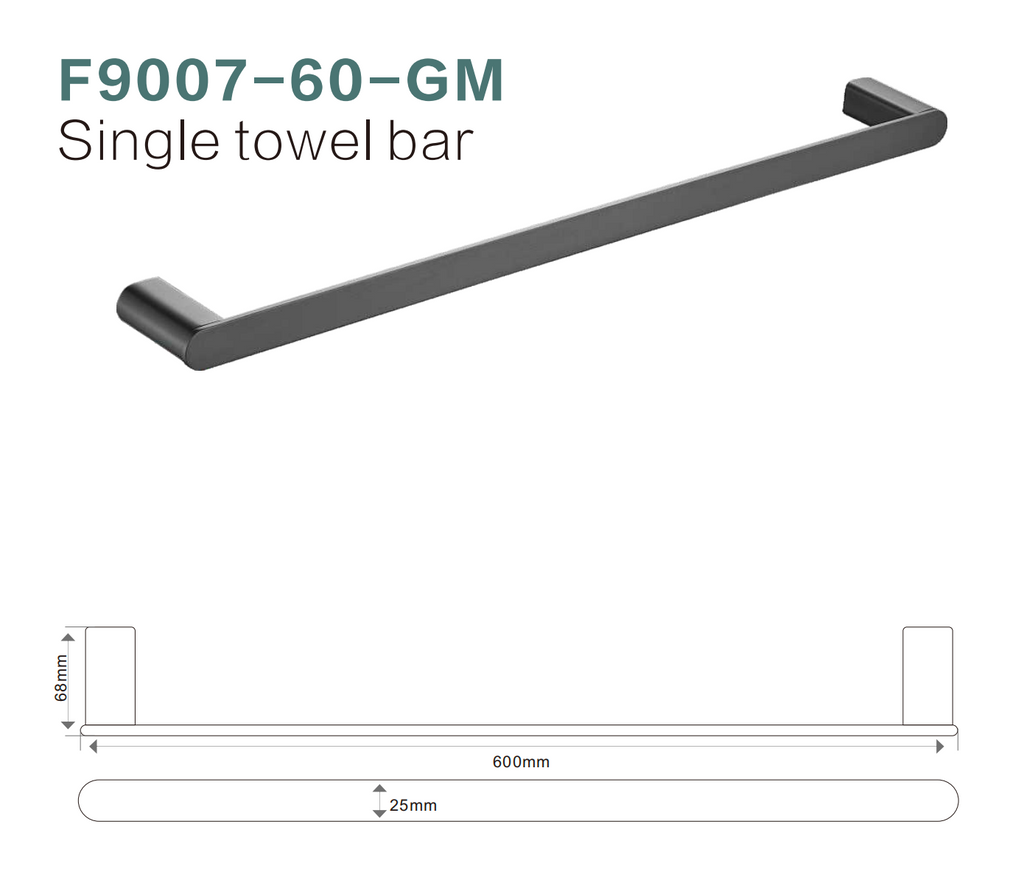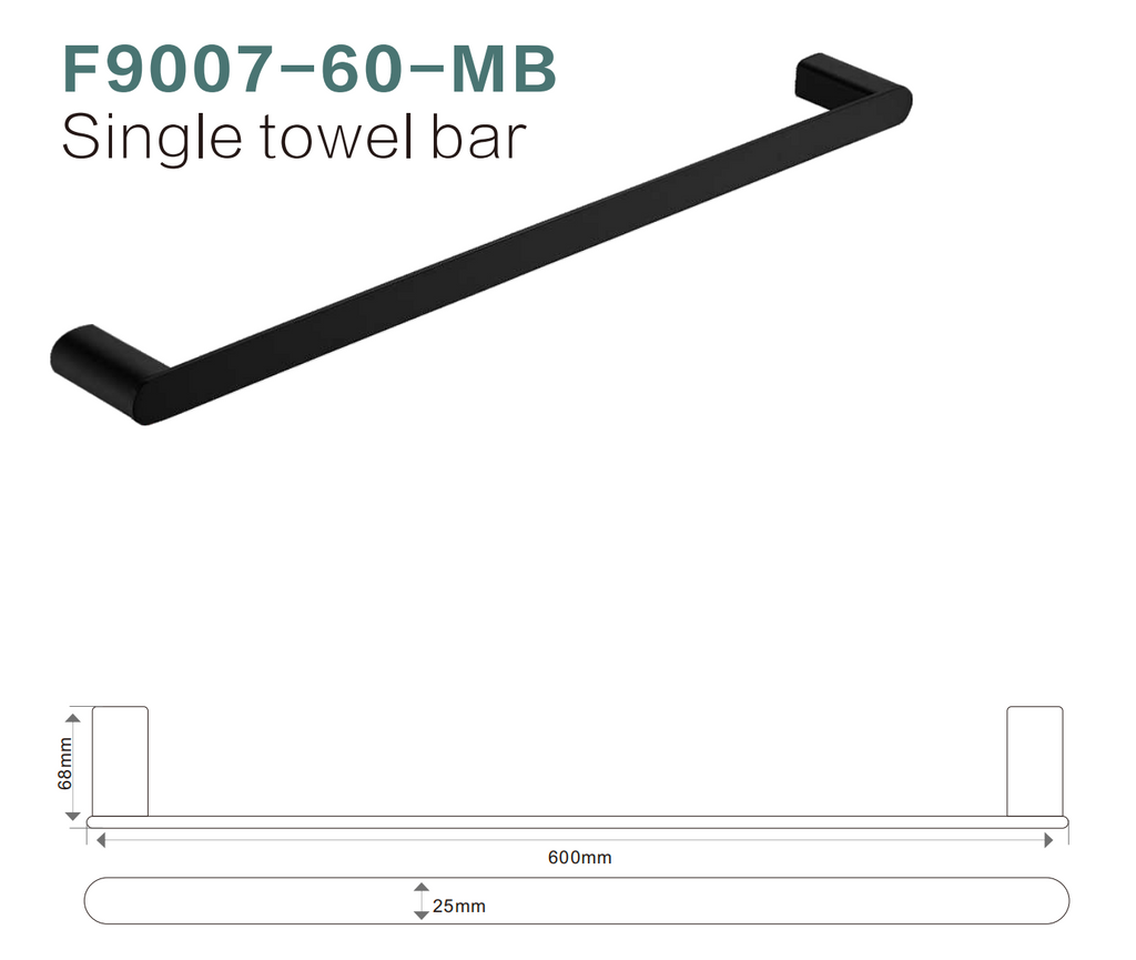 The BISTONE F9007-60 Single Towel Bar showcases a refined balance between soft curves and geometric precision, making it an ideal choice for contemporary bathrooms. Crafted from premium solid brass, this wall-mounted bar ensures outstanding strength, long-lasting corrosion resistance, and a sleek matte surface that enhances any modern décor.