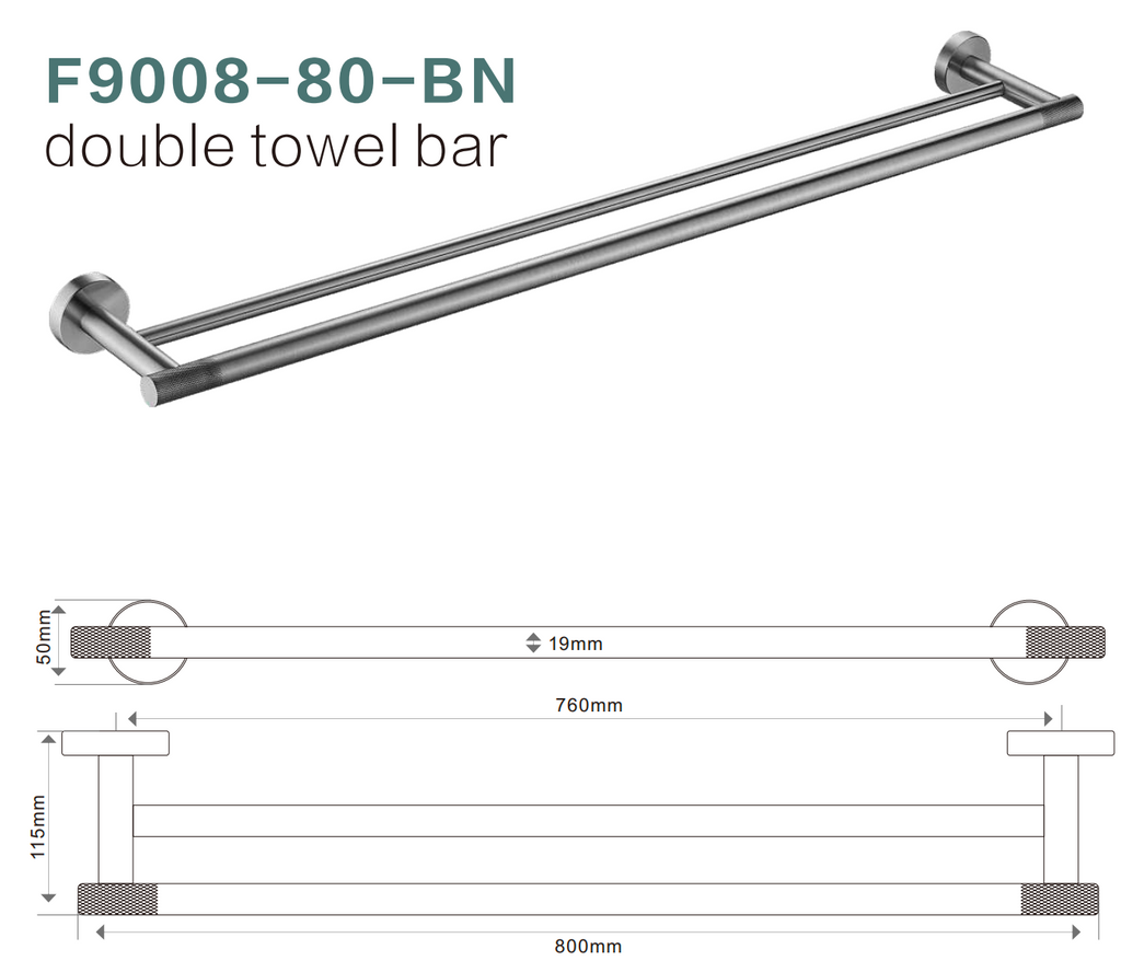 The BISTONE F9008-80 Double Towel Bar offers both functionality and style, designed for households seeking a practical yet elegant solution for towel storage. Its dual-rail structure maximises hanging capacity while maintaining a clean, streamlined aesthetic — perfect for contemporary bathrooms.