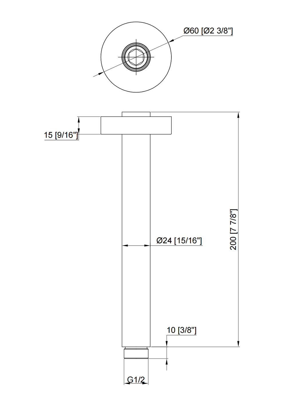 Available in two practical lengths — 200mm and 300mm, the SA04 allows you to choose the ideal drop height for your ceiling installation, providing optimal positioning for overhead rain shower heads. Each model includes a matching round flange (Ø60 mm) for a seamless and refined ceiling finish.