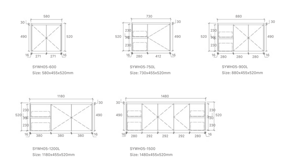 • Overall 460MM wall hung vanity• Ultra durable MDF finish• 2 colour options• Soft closing drawer runners