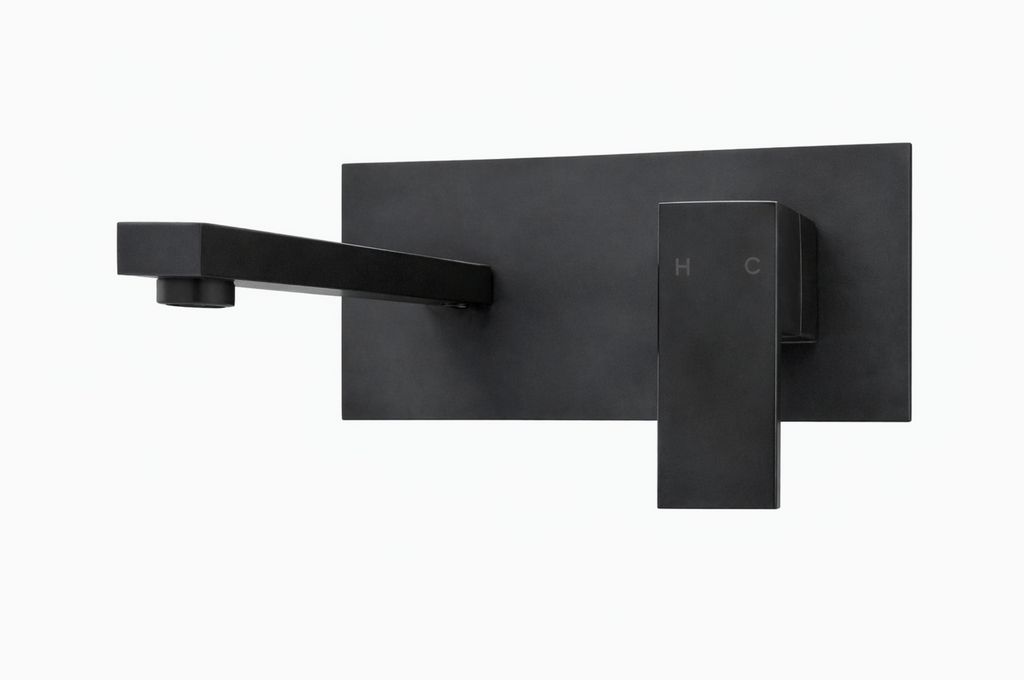 This square wall plate basin mixer is created for modern bathrooms that value both design and practicality. With the spout and control lever positioned on a single wall plate, it delivers a tidy, well balanced layout that enhances the visual flow of the basin area.