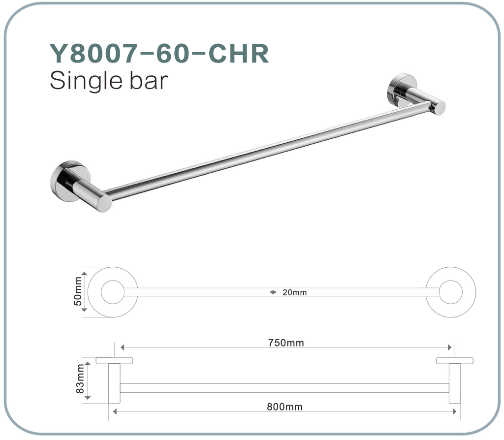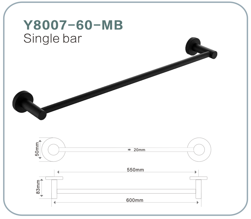 The BISTONE Y8007-60 Single Towel Bar combines sleek minimalist design with solid durability, making it a stylish addition to any contemporary bathroom. Crafted from premium solid brass, this wall-mounted rail ensures lasting performance, superior resistance to corrosion, and a luxurious aesthetic finish.