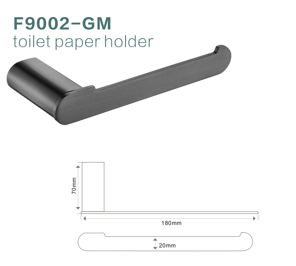 With a 180 mm arm length and 20 mm diameter, it accommodates standard toilet rolls with ease while maintaining a sleek, uncluttered appearance. The rounded front lip prevents the roll from slipping, and the concealed mounting system ensures a clean, seamless installation.
